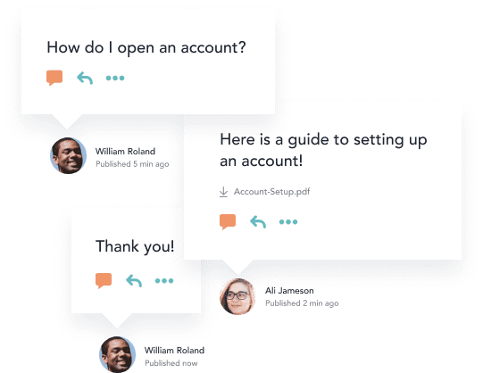 Sử dụng cổng thông tin này để phát triển diễn đàn cộng đồng của bạn, nơi khách hàng có thể khai thác các tùy chọn khác nhau để nhận thông tin có liên quan. Diễn đàn cộng đồng của bạn nên chứa: