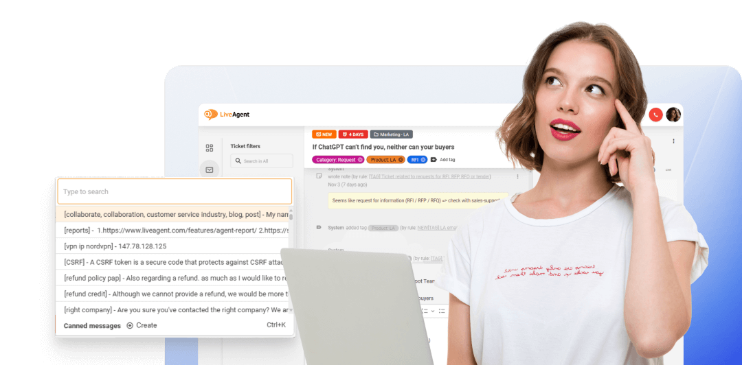 Nâng cao các email dịch vụ khách hàng của bạn với các mẫu sẵn có của LiveAgent. Tiết kiệm thời gian,...