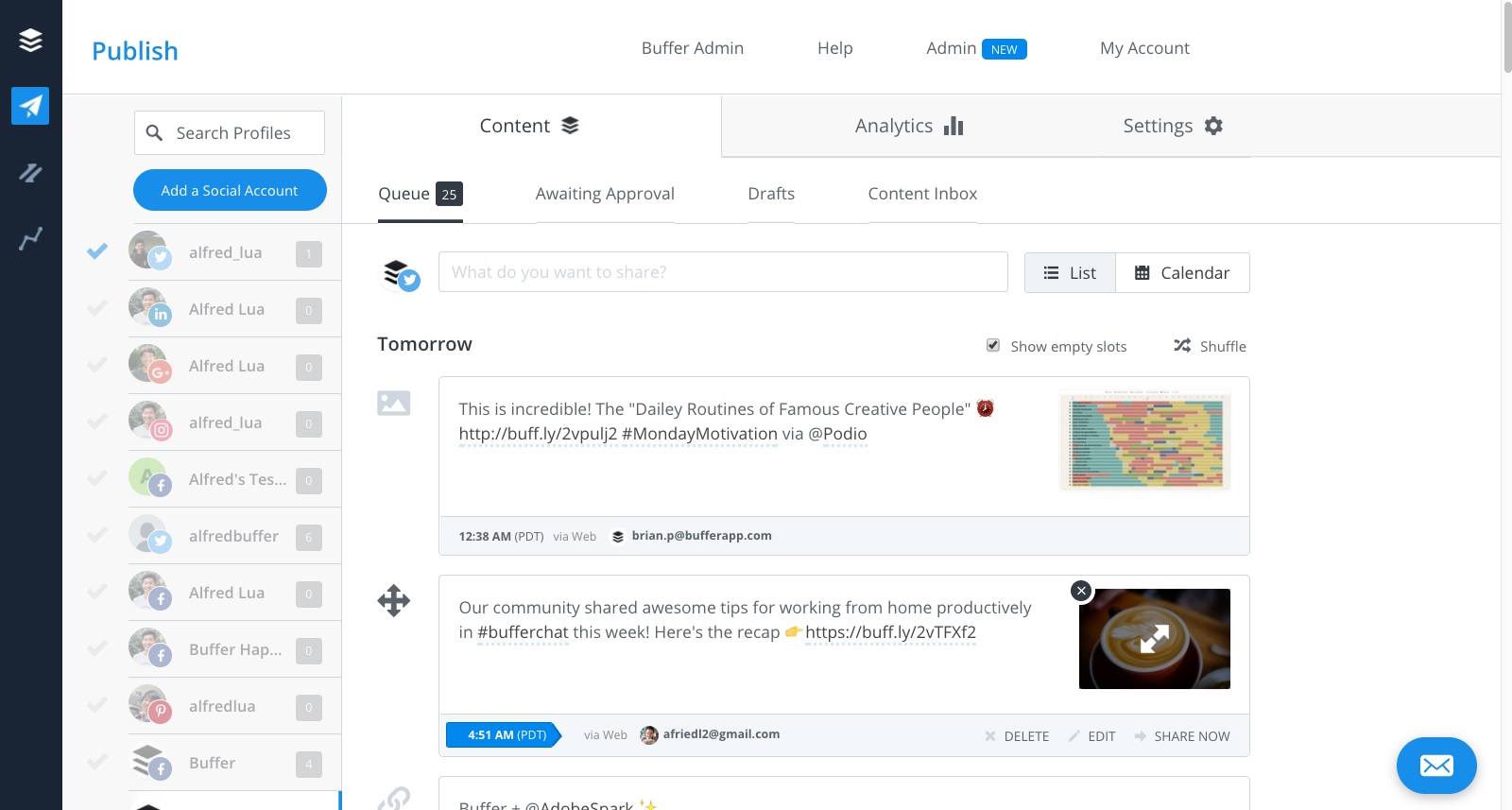 Tương tự như ứng dụng Socialbakers, Buffer được khen ngợi vì sự đơn giản của nó. Người dùng dễ dàng chọn lựa bố cục hình thức của bài đăng cũng như chỉnh sửa chúng trực tiếp ngay trên ứng dụng. Mặt khác, mọi người đồng ý rằng ứng dụng này chưa thể tích hợp với TikTok.