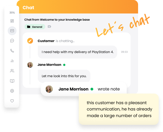 Hệ thống help desk cho phép đồng nghiệp của bạn cùng phối hợp theo nhiều cách. Bộ phận CSKH có thể liên lạc ngay trong ticket hỗ trợ khách hàng và giải quyết các vấn đề của khách hàng rất nhanh chóng. Hơn nữa, bộ phận CSKH cũng có thể chat bên ngoài các ticket. Làm việc nhóm hiệu quả sẽ nâng cao dịch vụ khách hàng của bạn lên mức chuyên nghiệp, điều này sẽ mang lại sự hài lòng cho khách hàng.