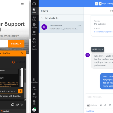 Hầu hết các tính năng khác mang tính thụ động, nghĩa là chúng được kích hoạt tự động và bạn không phải cài đặt gì. Chúng sẵn sàng hoạt động ngay tức thì. Tuy nhiên, bạn luôn có thể đào sâu hơn với các setting như điều hướng, chỉ định chat, chia sẻ file … Mọi thứ đều dễ dàng tiếp cận. Điều hướng giao diện, thiết lập live chat và trải nghiệm người dùng tổng thể khá tuyệt vời, tôi hoàn toàn không gặp vấn đề gì với bất kỳ tác vụ nào. Với toàn bộ thiết lập đã sẵn sàng hoạt động, đã đến lúc xem xét hiệu quả và trải nghiệm làm việc với ứng dụng live chat của LiveChat.