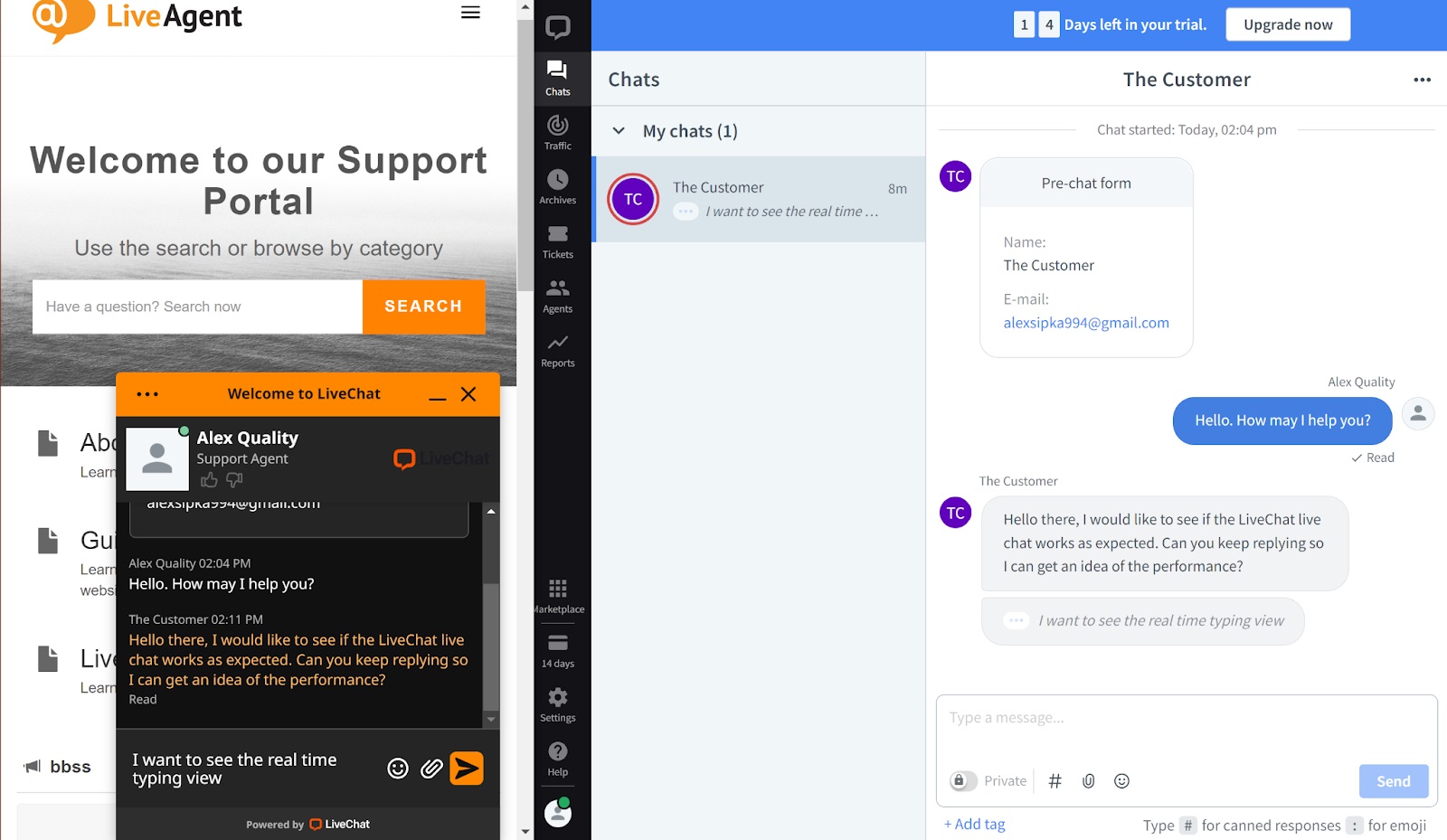 Tính năng sneak peek hoạt động hoàn hảo và nó bắt được nội dung tôi đang viết trong chưa đầy một giây. Tin nhắn vẫn ở trên màn hình khi người dùng không nhấn nút gửi, vì vậy bạn có thể chuẩn bị sẵn các tin nhắn khác. Trong khi đó, khách hàng nhìn thấy dấu ba chấm là thông báo rằng nhân viên hỗ trợ đang nhập câu trả lời cho họ. Hoạt động nói chung là rất tốt. Tốc độ trả lời gần như tức thì, không phải chờ đợi lâu.