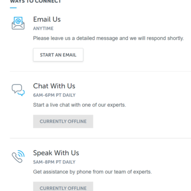 Khi bạn kéo chuột xuống cuối trang chính và nhấp vào “Visit Help Center”, nó sẽ đưa bạn đến trang Help Center của họ. Có một số Câu hỏi thường gặp có thể giúp bạn có được câu trả lời cho câu hỏi của mình. Nếu không thể tìm thấy nội dung đang tìm kiếm, bạn có thể click vào “Contact Our Customer Care Team” và sử dụng một trong ba cách này để liên hệ với họ.