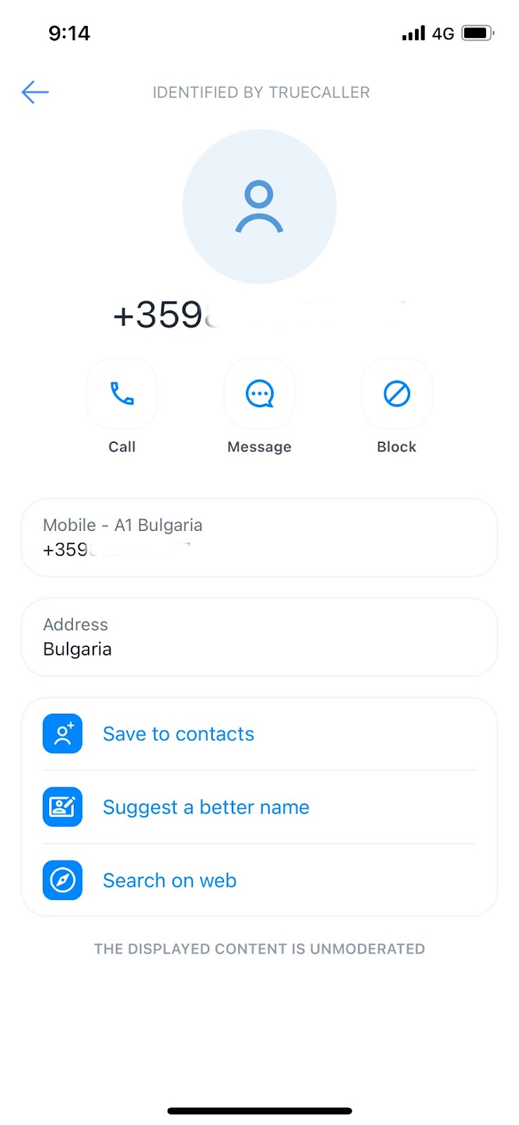 Thông tin về số điện thoại chưa biết có thể rất hạn chế. Nó có thể hiển thị cho bạn một số thông tin như quốc gia của số điện thoại đang gọi đến, giờ địa phương ở quốc gia đó và nhà khai thác viễn thông. Các giới hạn có thể khác nhau tùy thuộc vào quốc gia xuất xứ của số điện thoại và lượng dữ liệu công khai mà họ có thể thu thập từ quốc gia đó.