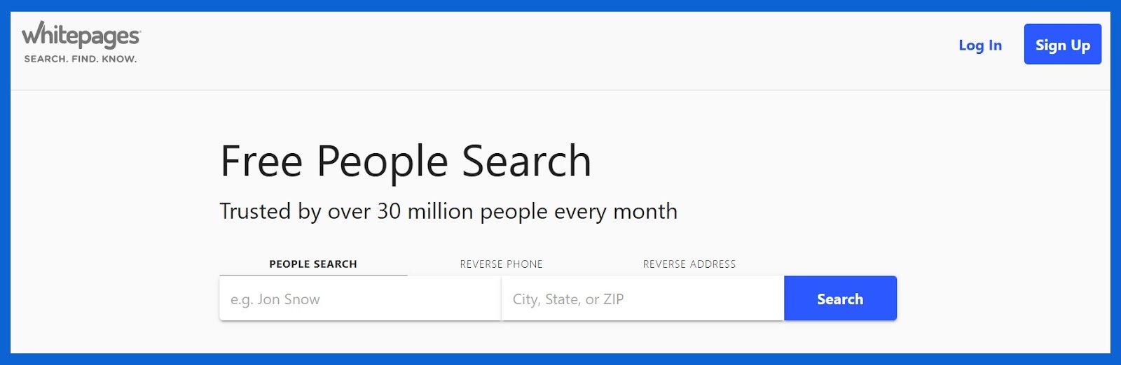 Whitepages cũng cung cấp một phiên bản miễn phí. Tuy nhiên, bạn phải nhớ rằng thông tin có sẵn trong bản miễn phí rất hạn chế và bất kỳ tính năng bổ sung nào cũng phải trả phí. Bạn có thể tìm thêm thông tin về mức phí của họ khi click vào “Sign up” trên trang chính của họ.
