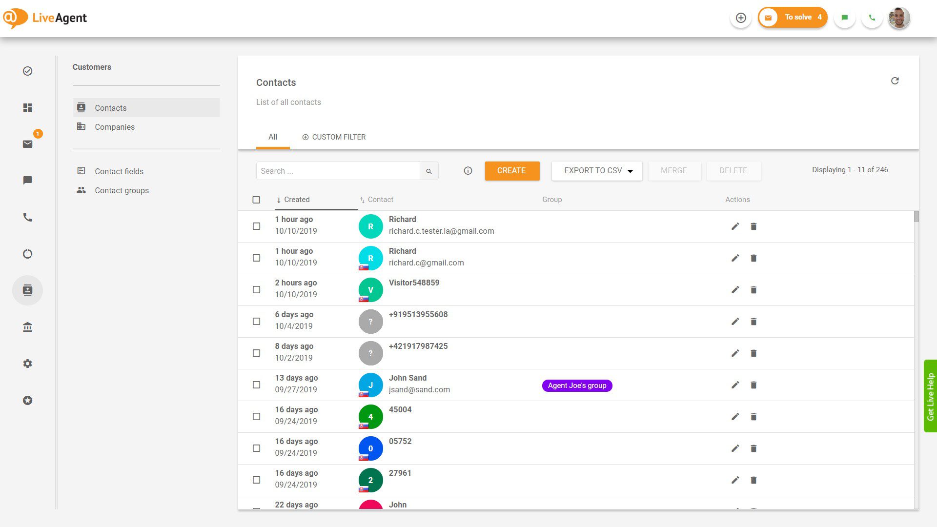 LiveAgent có thể lưu trữ tất cả thông tin liên hệ của khách hàng giúp cho quy trình làm việc được trôi chảy. Thông tin này được lưu trữ tự động với mỗi ticket bạn nhận được từ một contact không xác định, và bạn luôn có thể tùy chỉnh chúng bất kỳ lúc nào. Hệ thống tập hợp tất cả thông tin quan trọng, bao gồm ngày khởi tạo, kênh liên hệ chính và tên. Bạn có thể thêm thông tin mới như địa chỉ email, số điện thoại, tên công ty, giới tính và nhiều hơn nữa.