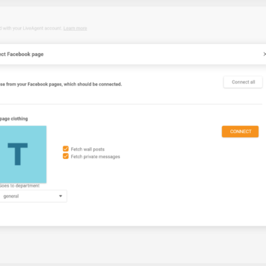 Tùy chọn đầu tiên cung cấp khả năng tích hợp Facebook, vì vậy tôi đã chọn option này để bắt đầu. Tôi chỉ cần đăng nhập vào tài khoản Facebook của mình và cung cấp tất cả quyền truy cập cần thiết vào trang Facebook về hoạt động kinh doanh của mình. Sau khi nhận được thông báo rằng quá trình tích hợp thành công, tôi phải chọn loại hình bài đăng mà tôi sẽ cho phép LiveAgent kết nối. Tôi đã chọn tất cả chúng để giữ cho nó đơn giản. Một điểm thú vị là option chọn department (bộ phận) nào trong LiveAgent sẽ có quyền truy cập vào ticket Facebook, cho phép bạn tự do tổ chức hoạt động giao tiếp của mình cho phù hợp.