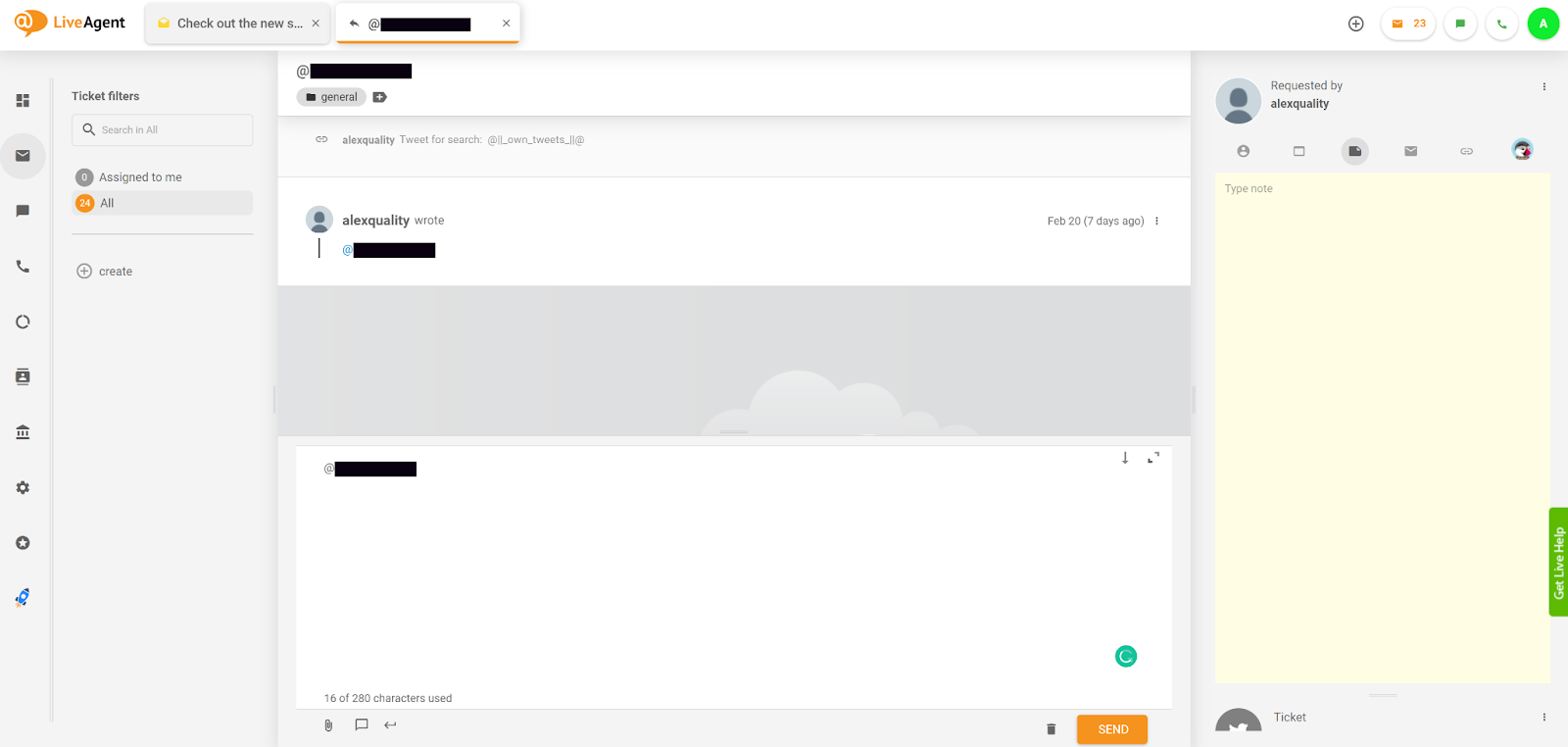 Việc trả lời cực kỳ dễ dàng, không chỉ vì giao diện dễ sử dụng mà còn nhờ các tính năng quản lý ticket hiện hữu. Tôi có quyền truy cập vào các câu trả lời soạn sẵn, file đính kèm, ghi chú và các chức năng tuyệt vời khác. Trải nghiệm này cũng tương tự với việc trả lời các yêu cầu trên Twitter và một lần nữa, tất cả các tính năng đều có sẵn để sử dụng trong ticket. Instagram không phải là một ngoại lệ, mọi thứ đều hoạt động tốt như các kênh giao tiếp khác.