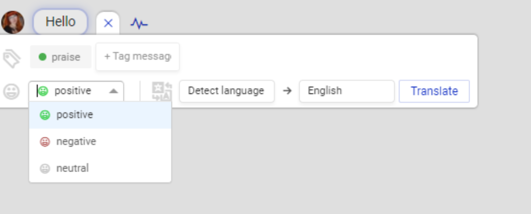 Nhấp vào ba dấu chấm bên cạnh tin nhắn của khách hàng, bạn có thể gán thẻ tag, cũng như mức độ cảm xúc dành cho tương tác. Điều này không chỉ giúp bạn tổ chức giao tiếp với khách hàng mà còn cho phép bạn tạo các báo cáo chi tiết phù hợp hơn.