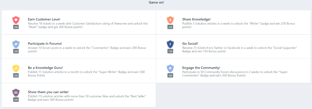 Khi tất cả đội hỗ trợ của bạn đã được sắp xếp ổn định và sẵn sàng làm việc, vì sao lại không thêm một chút niềm vui vào toàn bộ hoạt động CSKH? Đây là lúc các tính năng gamification của Freshdesk phát huy tác dụng.