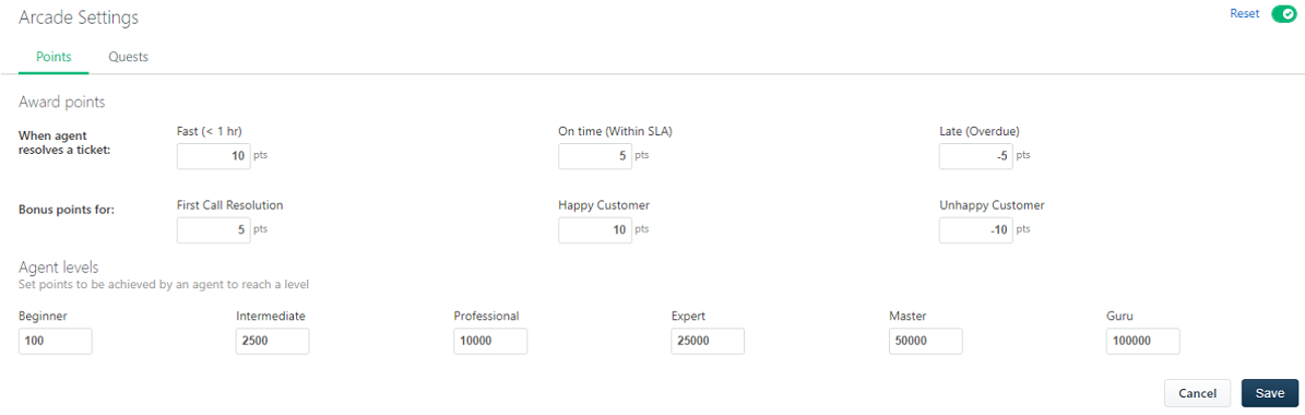 Sau khi bạn thiết lập các quy tắc game hóa theo sở thích của mình, Freshdesk sẽ bắt đầu theo dõi dữ liệu cần thiết dựa trên tiêu chí mà bạn đặt ra. Bạn không cần phải làm gì khác ngoài việc thiết lập hệ thống. Nhân viên nhận được điểm hoặc huy hiệu khi đáp ứng các điều kiện nhất định – mọi thứ đều được thực hiện tự động.
