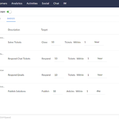 Một trong những tính năng chính của hệ thống game hóa Zoho Desk là hệ thống các huy hiệu. Nhân viên hỗ trợ có thể kiếm được huy hiệu dựa trên hiệu suất của họ, như “Mail Magician,” “Customer Delight,” và “Ticket Terminator.” Những huy hiệu này sẽ được hiển thị trên hồ sơ của nhân viên, công nhận những thành tích của họ. Zoho cũng cho phép bạn thêm huy hiệu tùy chỉnh.