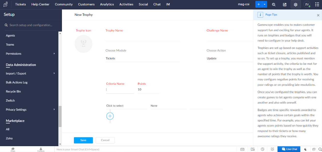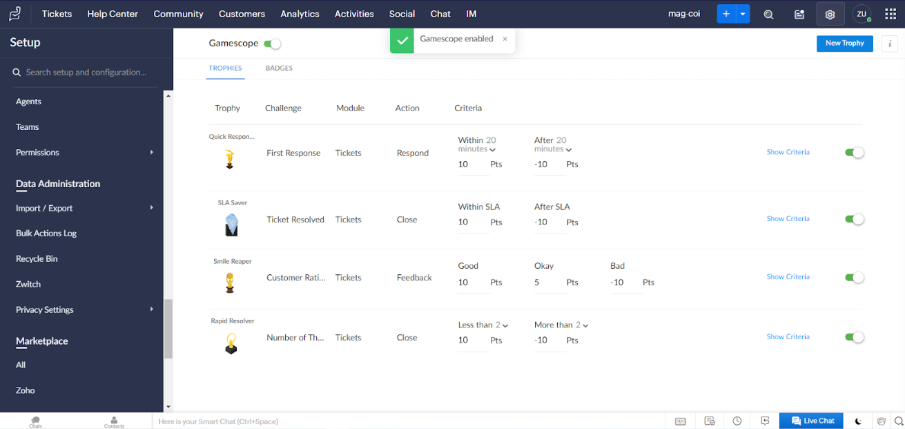 Các tính năng game hóa trong Zoho Desk