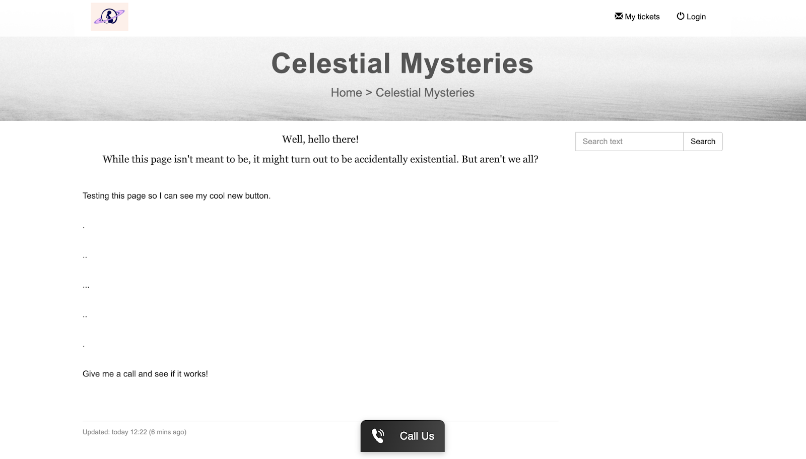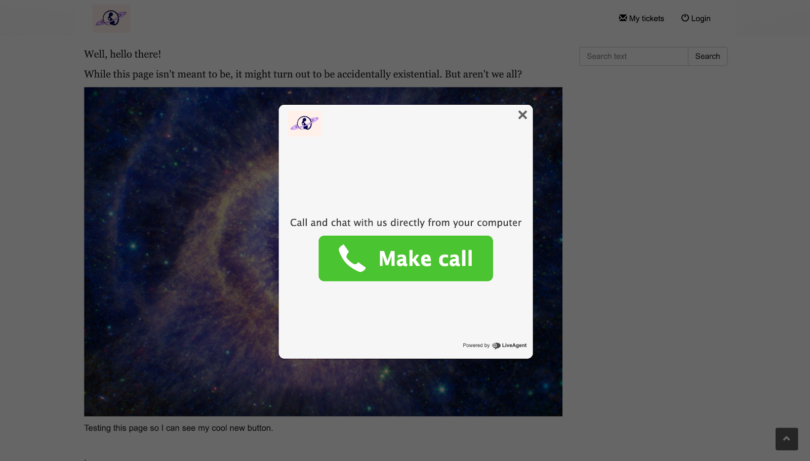 Click vào nút Call Us trên trang của tôi sẽ tạo ra một cửa sổ pop-up với văn bản có thể tùy chỉnh, do đó, bạn có thể quản lý được cách thức khách hàng cảm nhận về dịch vụ của mình ngay cả trước khi bắt đầu cuộc gọi.
