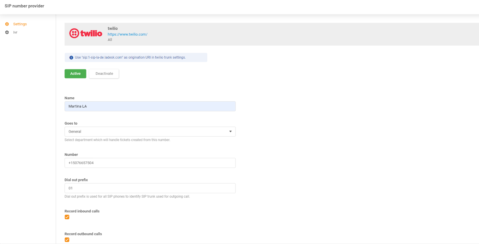 Tôi có tài khoản Twilio nên đã tích hợp nó vào. Nếu bạn chưa thiết lập nhà cung cấp VoIP, hệ cơ sở tri thức của LiveAgent sẽ cung cấp một bài viết hữu ích hướng dẫn bạn thực hiện quy trình này.