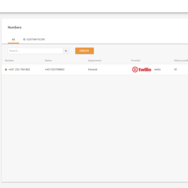 Sau khi quan sát một lúc, tôi đã sẵn sàng test thử chức năng ghi âm cuộc gọi của LiveAgent. Tất nhiên, bạn không thể ghi âm cuộc gọi nếu không thiết lập số điện thoại VoIP và SIP trunking. Đừng lo lắng, LiveAgent cung cấp rất nhiều tiện ích tích hợp cho việc này, vì vậy, bất kể nhà cung cấp VoIP của bạn là gì, rất có thể LiveAgent có hỗ trợ tích hợp với họ. Để kiểm tra những hệ thống nào có thể tích hợp, hãy đi tới agent panel bên trái, click vào Settings > Calls > Numbers, sau đó nhấn vào nút Create màu cam.