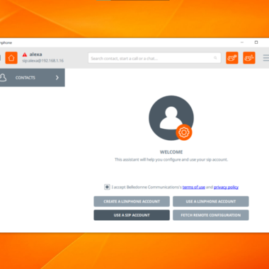 Là một softphone mã nguồn mở, Linphone có thể được tải xuống đơn giản từ trang web chính thức và cài đặt trên máy tính của bạn chỉ trong giây lát. Quá trình cài đặt rất thông thường. Sau khi ứng dụng khởi động, Linphone chào đón tôi bằng thỏa thuận người dùng và Hướng dẫn làm quen với nhiều tùy chọn. Bạn có thể tạo hoặc đăng nhập vào tài khoản Linphone của mình, kết nối tài khoản SIP hoặc thực hiện tìm nạp cài đặt cấu hình từ xa.