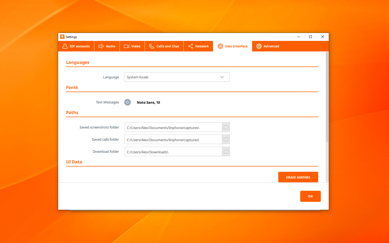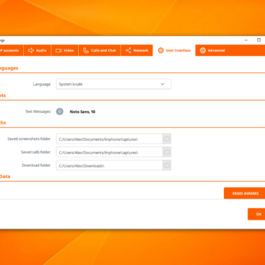 Cài đặt ứng dụng cung cấp một loạt tùy chọn khá ấn tượng để người dùng có thể điều chỉnh ứng dụng theo sở thích của họ. Bên cạnh các tùy chọn âm thanh tiêu chuẩn, chẳng hạn như lựa chọn thiết bị phát âm thanh và thiết bị ghi hình, bạn có thể sử dụng các codec âm thanh. Điều tương tự cũng áp dụng cho video và codec video. Cuộc gọi và chat có các option riêng: trả lời tự động, ghi âm cuộc gọi tự động, tùy chọn thông báo … Ứng dụng này cũng cho phép bạn chuyển sang ngôn ngữ khác và thậm chí chọn font chữ cho tin nhắn của mình.