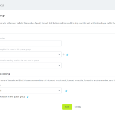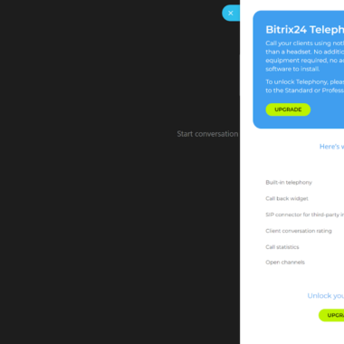 Bitrix24 là một giải pháp phần mềm sâu rộng với các chức năng của tổng đài cuộc gọi chủ yếu tập trung vào quản lý quan hệ khách hàng. Chức năng Điện thoại cho phép bạn thuê các số điện thoại địa phương hoặc kết nối các số của riêng mình nếu có sẵn. Điều này có thể thực hiện được nhờ nhiều tích hợp sẵn có cho phép chức năng như vậy. Các chức năng của tổng đài cuộc gọi Bitrix24 bao gồm tạo các nhánh điện thoại nội bộ, cũng như xếp hàng cuộc gọi và chuyển tiếp cuộc gọi.