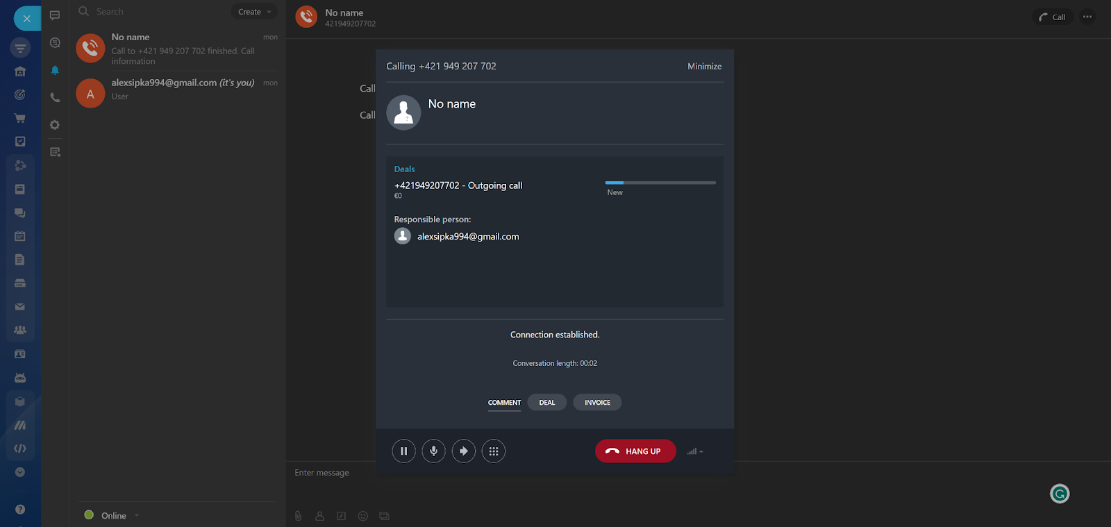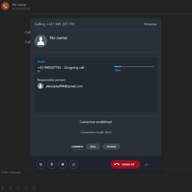 Menu bên trái cũng có tùy chọn quay số và gọi điện. Bàn phím quay số khá nhỏ, nhưng đó không phải là vấn đề vì bạn có thể sử dụng bàn phím số của mình để nhập số. Sau khi thực hiện xong, Bitrix24 sẽ mở một cửa sổ cuộc gọi riêng với một số cài đặt. Bạn có thể tắt hoặc bật microphone, điều chỉnh âm lượng … Bitrix24 cũng có thông báo cho các cuộc gọi đến. Tất cả các cuộc gọi được ghi lại trong lịch sử cuộc gọi.