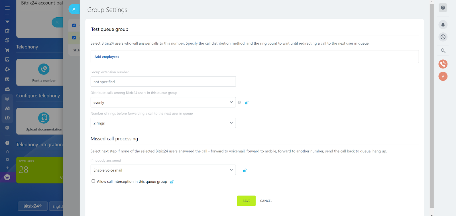 Các tính năng tổng đài cuộc gọi Bitrix24