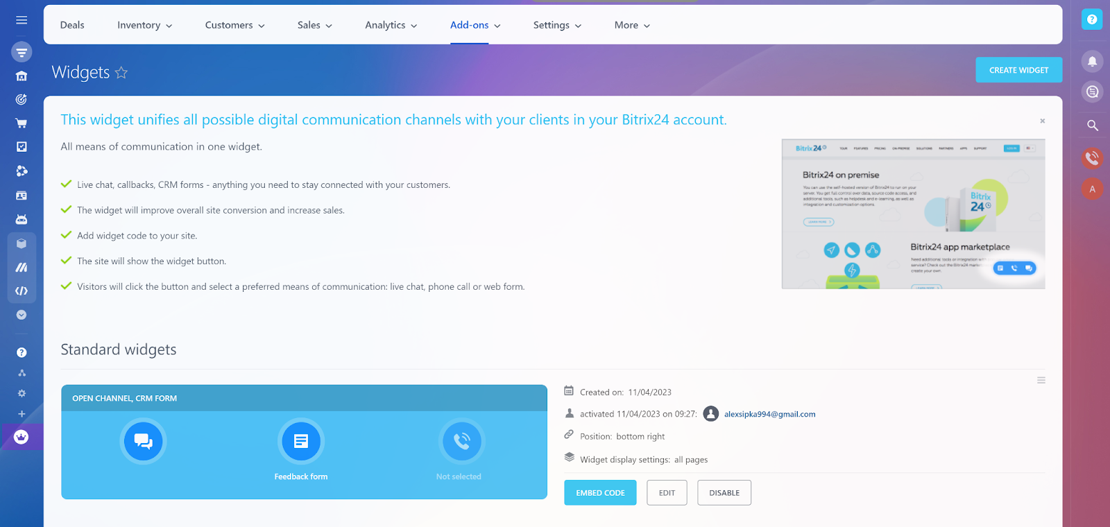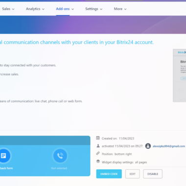 Bitrix24 cung cấp nhiều tính năng tổng đài cuộc gọi hơn, đan xen với các tính năng CRM còn lại. Bạn có thể ghi lại tất cả các cuộc gọi và truy cập các bản ghi âm trong lịch sử tổng đài cuộc gọi bất cứ lúc nào. Bitrix24 cũng cung cấp chức năng telemarketing với các tính năng nâng cao như trình quay số tự động hoặc widget gọi lại có thể được cài đặt trên bất kỳ loại trang web nào. Bạn cũng có thể gửi yêu cầu gọi lại hoặc sử dụng giọng nói và tin nhắn SMS.