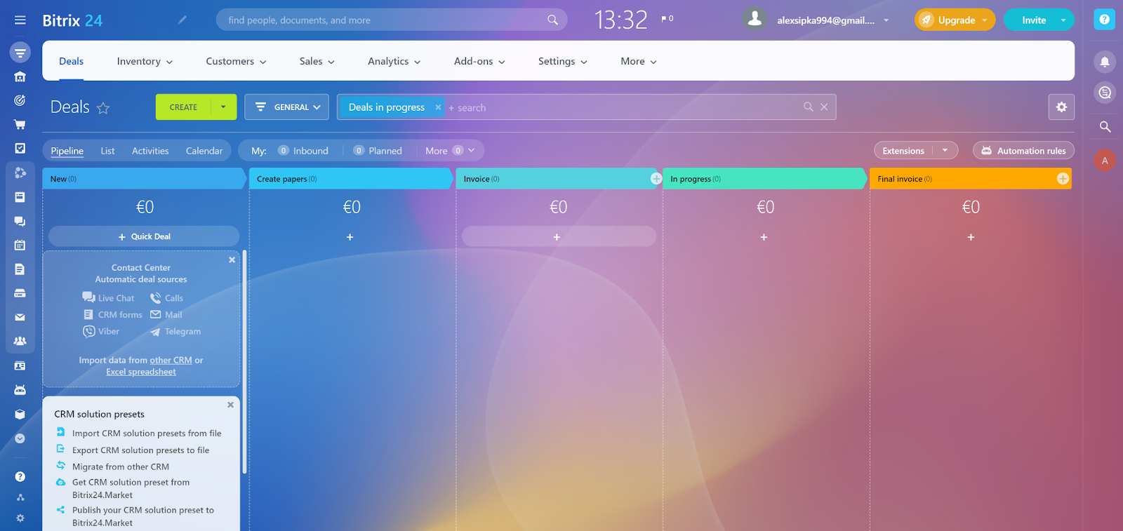 Bitrix24 cho phép tất cả người dùng làm quen sử dụng không tốn phí nhờ bản dùng miễn phí. Mặc dù một số tính năng chỉ khả dụng trong các gói tính phí, nhưng bạn có thể dùng thử hầu hết các tính năng đó trong bản dùng thử miễn phí này. Quá trình đăng ký rất nhanh chóng và dễ dàng, chỉ yêu cầu thông tin cơ bản. Khi điền vào các chi tiết cần thiết, bạn sẽ được gửi một đường link kích hoạt, bạn chỉ cần truy cập vào tài khoản Bitrix24 của mình. Vì Bitrix24 là một phần mềm rất phong phú dành cho nhiều use case, nên bạn có thể chọn use case chính của mình ngay từ đầu, giao diện và các công cụ sẽ được điều chỉnh phù hợp cho mục đích này. Tuy nhiên, bạn vẫn có thể truy cập tất cả các công cụ.