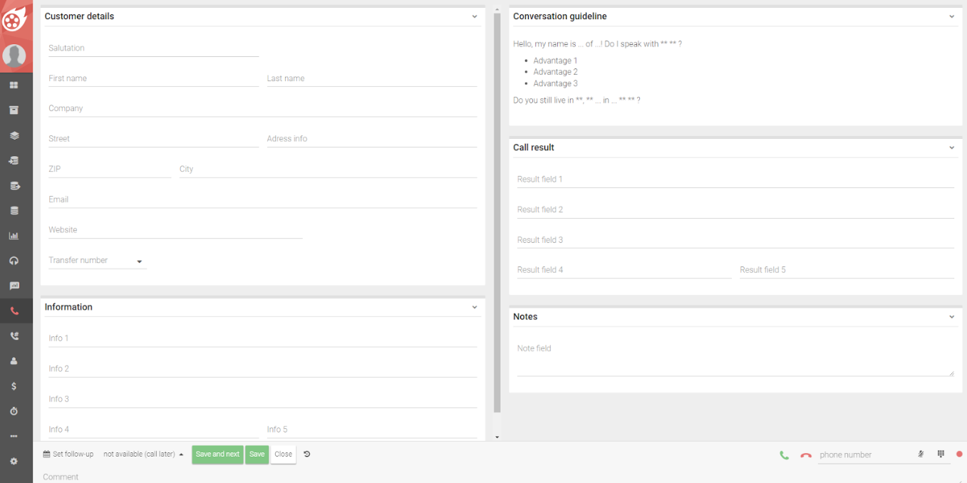 Sau khi hoàn tất, hãy mở tab Call. Tại đây, bạn có thể gọi cho một khách hàng hiện hữu hoặc thêm một khách hàng mới. Tôi quyết định thêm một khách hàng mới vào danh bạ của mình. Bạn có thể điền khá nhiều thông tin về họ, bao gồm các guideline trong giao tiếp và kết quả cuộc gọi.