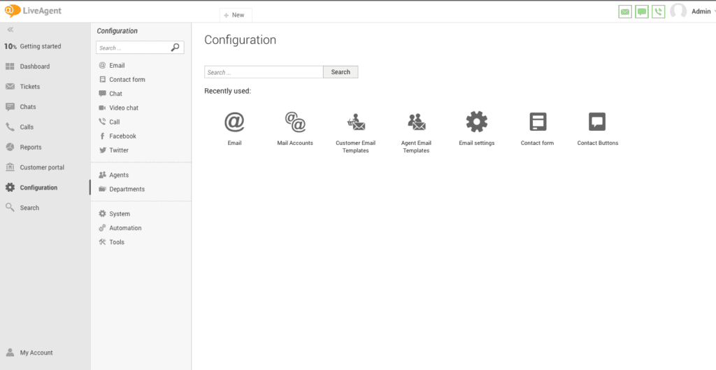 Khi nhân viên đăng nhập vào LiveAgent, họ có thể quản lý được nhiều thứ từ bảng điều khiển cho nhân viên hỗ trợ khách hàng. Họ có thể kích hoạt plugin, tạo và quản lý phiếu yêu cầu hỗ trợ, thay thế logo LiveAgent mặc định, tạo người dùng mới, chỉnh sửa các tổ chức và nhiều tính năng khác nữa. Để các phiên trò chuyện có thể dễ dàng bắt đầu trực tiếp từ bảng điều khiển cho nhân viên hỗ trợ khách hàng, mọi thứ đều nên tập trung ở một nơi. Bảng điều khiển cho nhân viên hỗ trợ khách hàng nằm ở phía bên trái cửa sổ LiveAgent. Nó rất dễ sử dụng, rõ ràng và đơn giản.