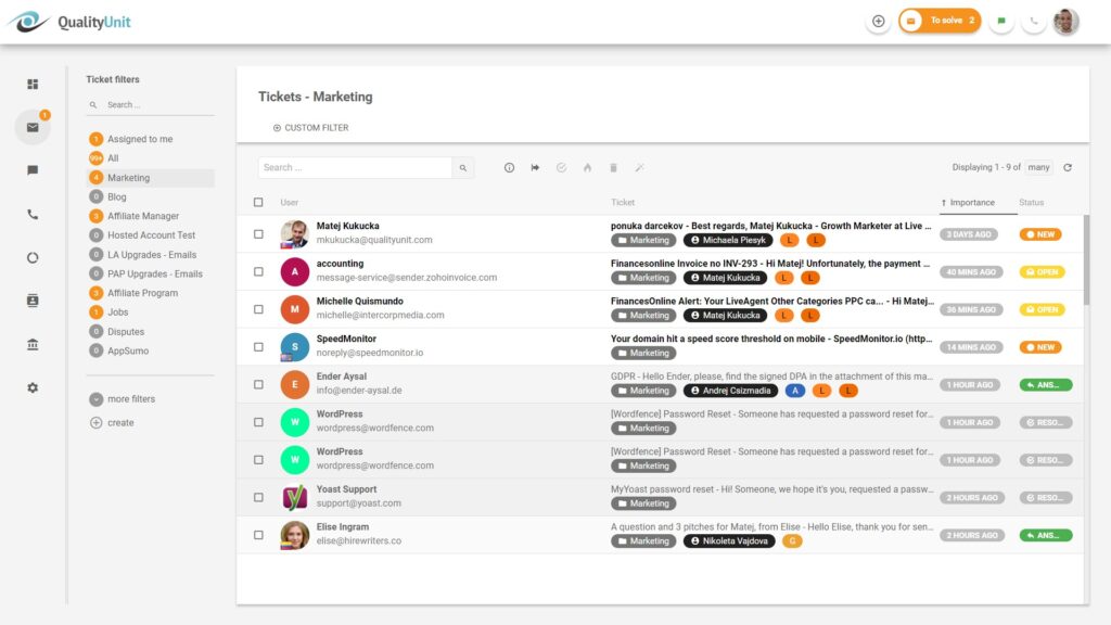 Nâng cao hiệu quả tiếp thị của bạn với LiveAgent! Tạo ấn tượng trực tuyến ban đầu tốt hơn và cải thiện danh tiếng doanh nghiệp với phần mềm chăm sóc khách hàng mạnh mẽ. Trả lời mọi truy vấn khách hàng, theo dõi tương tác từ một hộp thư đến duy nhất, và tăng năng suất làm việc. Dùng thử miễn phí 14 hoặc 30 ngày, không cần thẻ tín dụng. Khám phá cách LiveAgent có thể tối ưu hóa chiến lược tiếp thị và dịch vụ khách hàng của bạn ngay hôm nay!